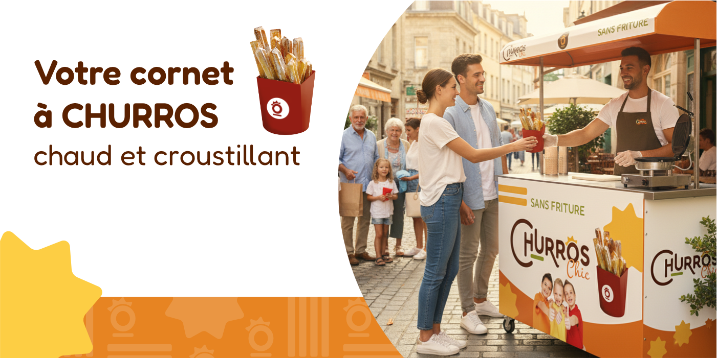 Développez une activité rentable et moderne avec Churros Chic, le concept clé en main de churros sans friture. Idéal pour divers points de vente, notre solution allie gourmandise, hygiène et praticité, tout en offrant une expérience unique à vos clients.