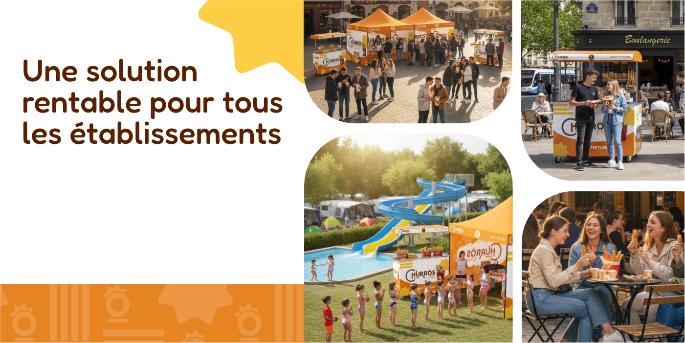 Développez une activité rentable et moderne avec Churros Chic, le concept clé en main de churros sans friture. Idéal pour divers points de vente, notre solution allie gourmandise, hygiène et praticité, tout en offrant une expérience unique à vos clients.